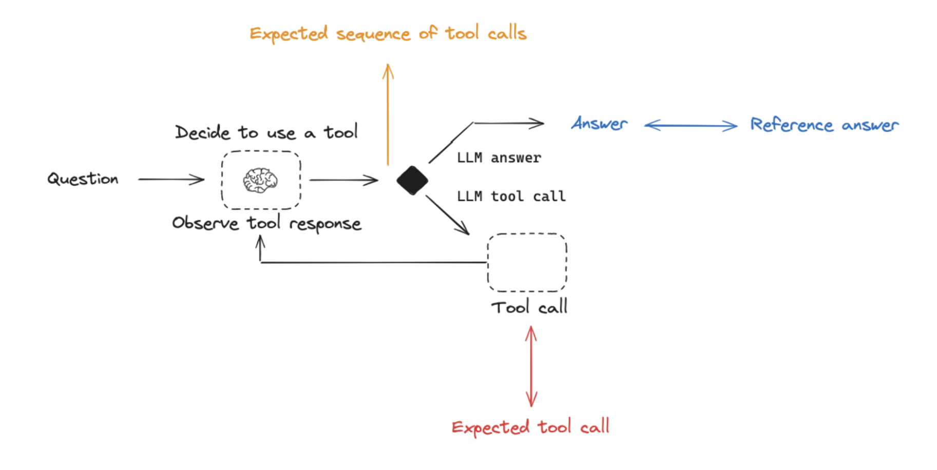 The evaluator for this is usually some binary score for whether the correct tool call was selected, as well as some heuristic for whether the input to the tool was correct. The reference tool can be simply specified as a string.
